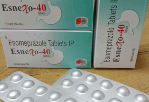 Esomeprazole Tablets IP 40 mg, as indicated by the packaging "Esnezo-40," contain esomeprazole, a proton pump inhibitor (PPI) used to reduce stomach acid production, commonly prescribed for conditions like acid reflux, heartburn, and ulcers. The "IP" signifies that these tablets adhere to the standards set by the Indian Pharmacopoeia.