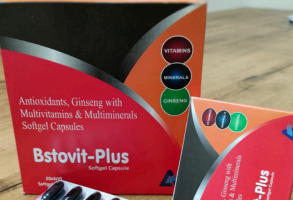 Bstovit-Plus Softgel Capsules are a formulation containing antioxidants, ginseng, along with a variety of multivitamins and multiminerals, intended to provide nutritional support, boost energy levels (due to ginseng and B vitamins), and protect against cellular damage (due to antioxidants).